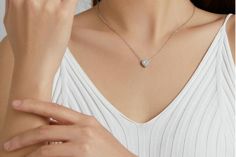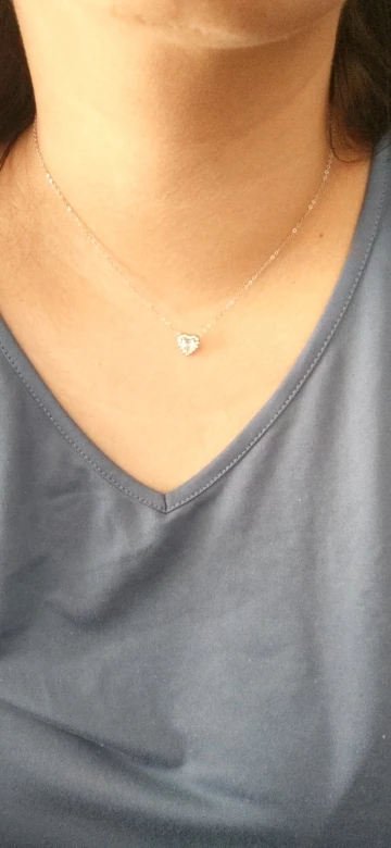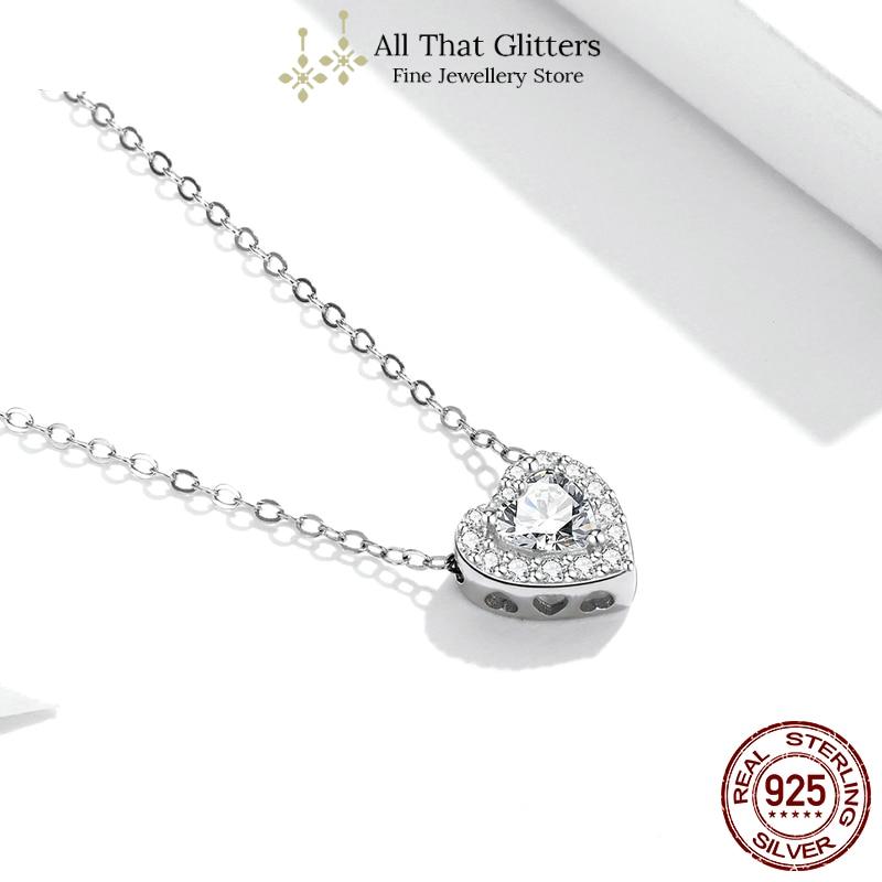 Shiny Heart Shaped Cubic Zirconia Charm Necklace crafted in Genuine Sterling Silver