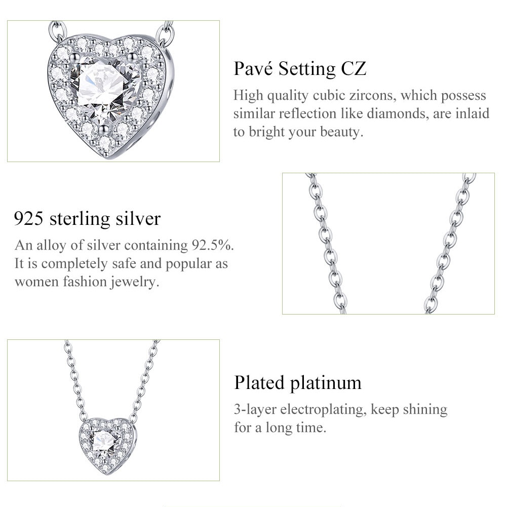 This stunning Cubic Zirconia Charm Necklace is the perfect way to express your love and affection. Crafted from genuine sterling silver, this necklace features a heart-shaped charm with a pave setting and platinum plating for a luxurious finish. The sterling silver chain is stamped with 925 for authenticity and measures 37+4+4cm in length, with the pendant measuring 0.9*0.9cm.