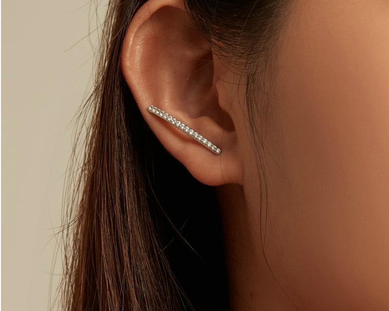 Introducing these stunning Minimalist Line Cubic Zirconia Hook earrings. Fashioned from sterling silver and featuring a row of inlaid Cubic Zirconia stones, these earrings are sure to turn heads. For added protection and shine, they are also platinum plated.