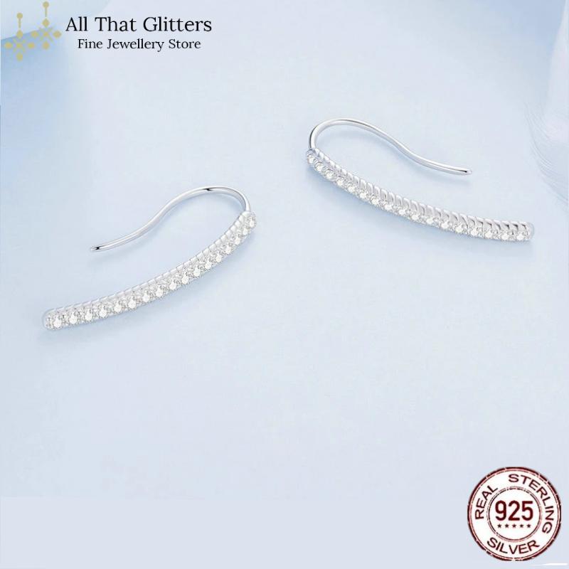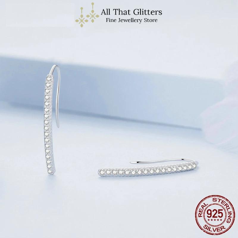 Minimalist Line Cubic Zirconia Hook earrings fashioned in Sterling Silver