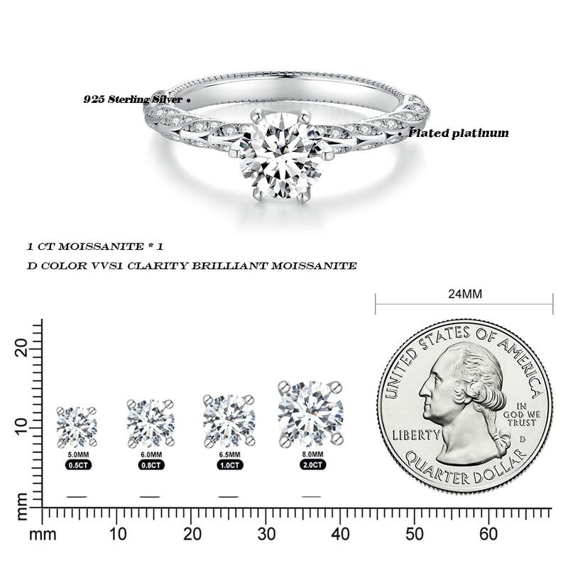 Shining 1ct Moissanite Ring with etched design stud with CZ in paved setting crafted on Genuine Sterling Silver