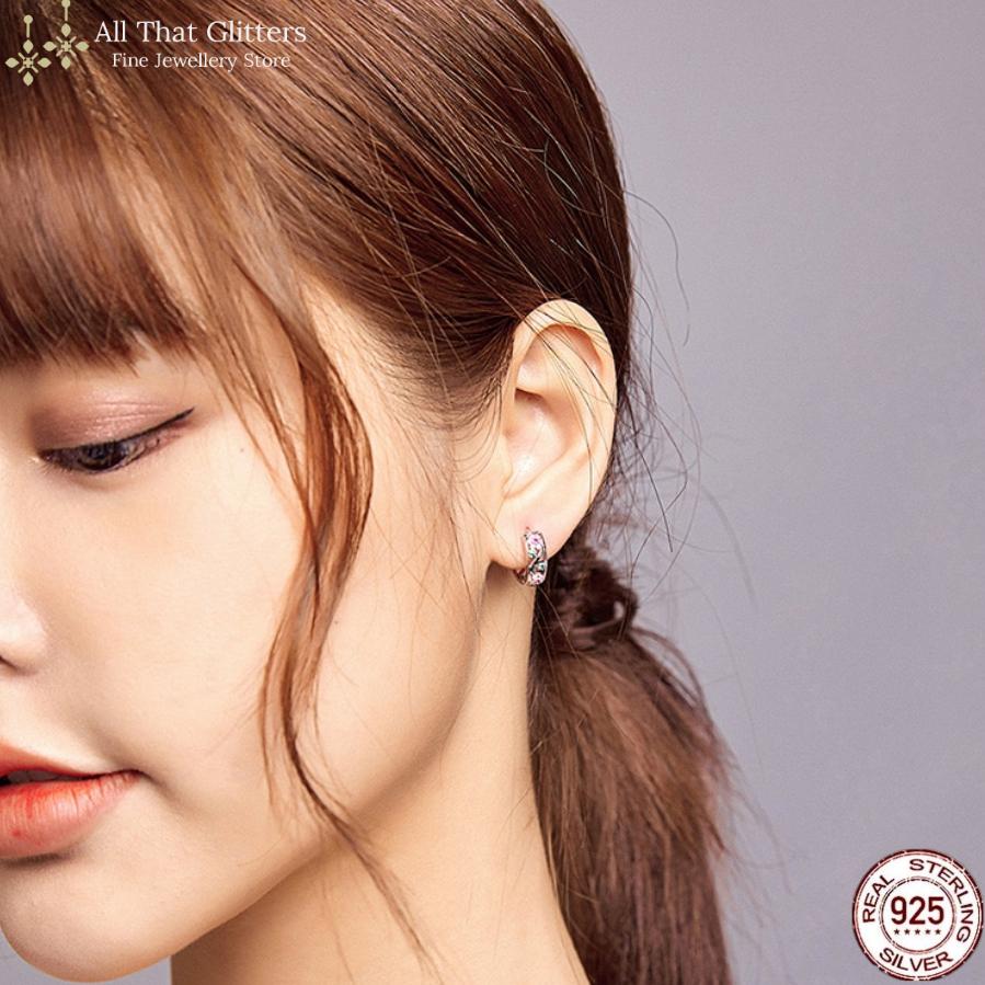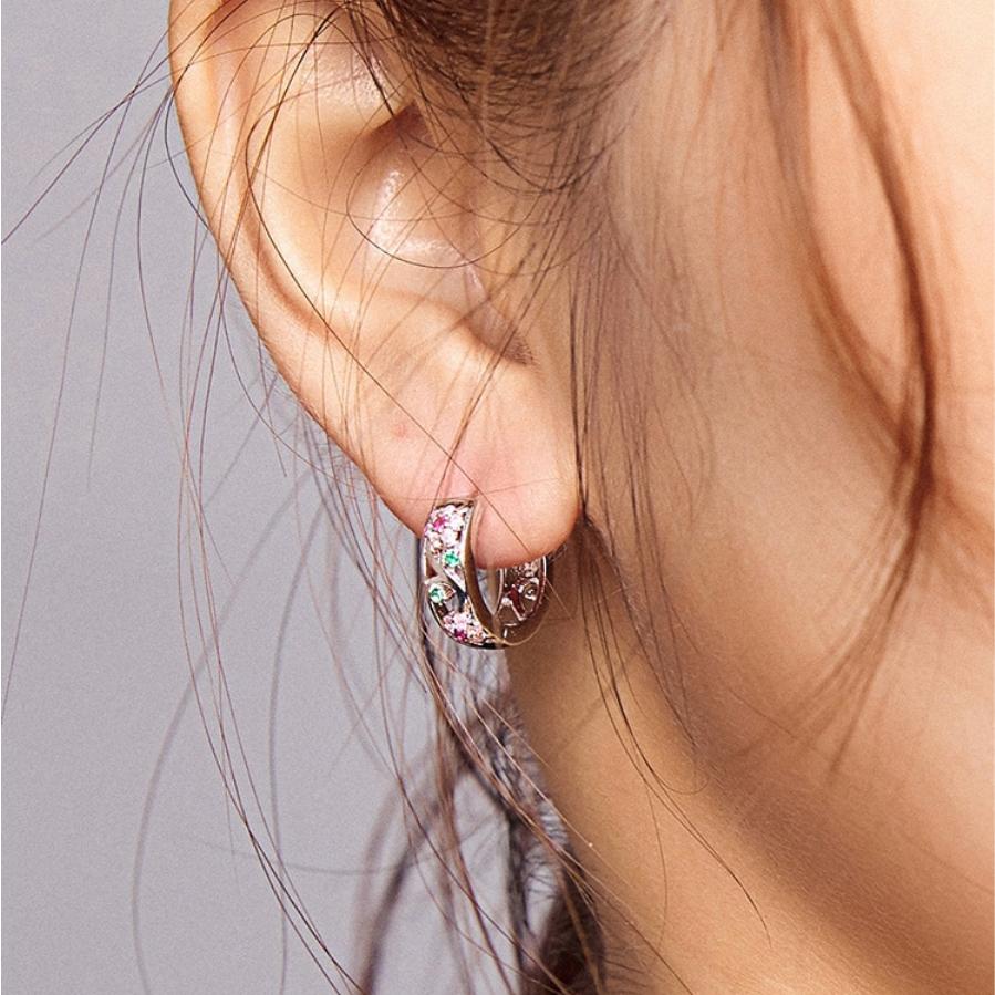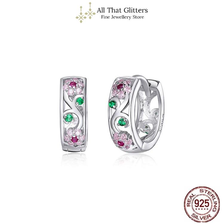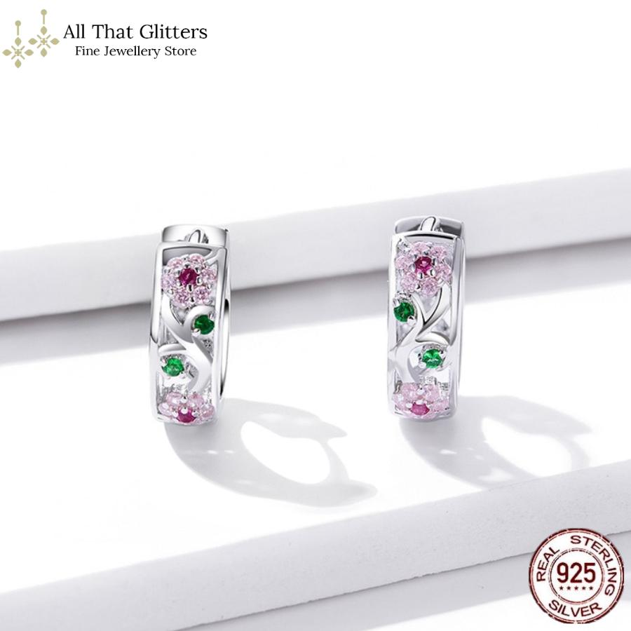 Spring Flower Cubic Zirconia Hoop Earrings crafted in Genuine Sterling Silver
